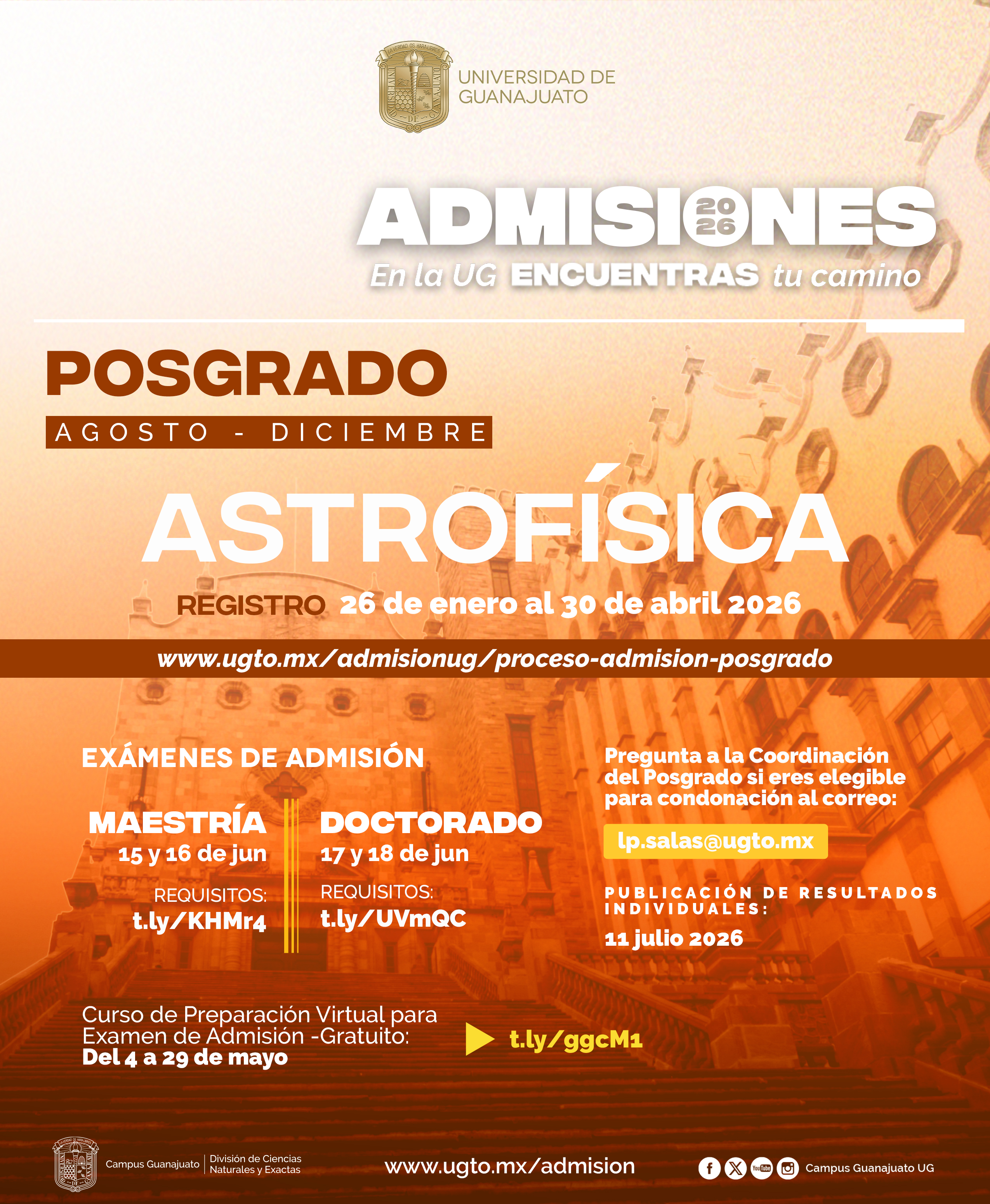 Admisión al Posgrado en Ciencias (Astrofísica), Agosto 2026